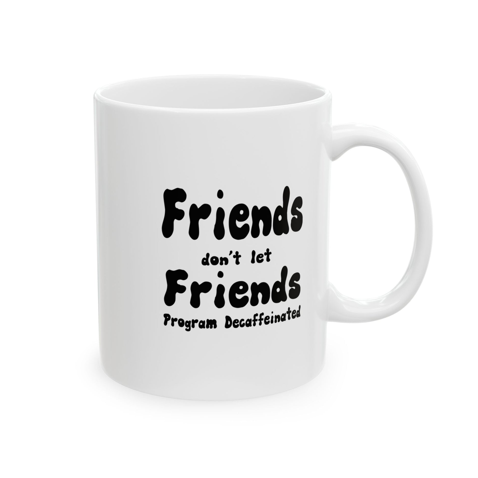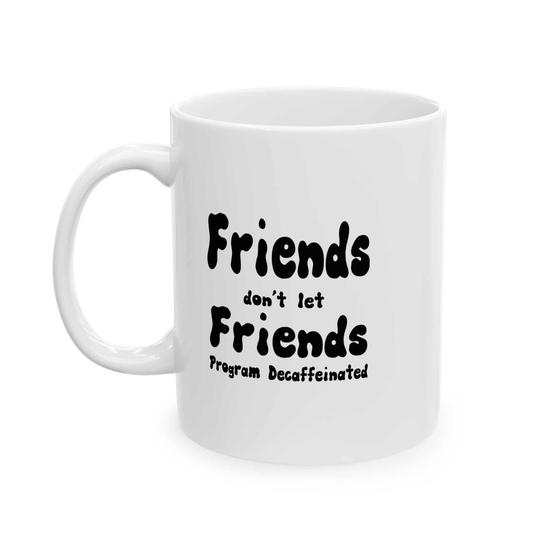 Friends Don't Let Friends Program Decaffeinated, Funny Coffee or Tea Mug, Gift for a Man or Woman