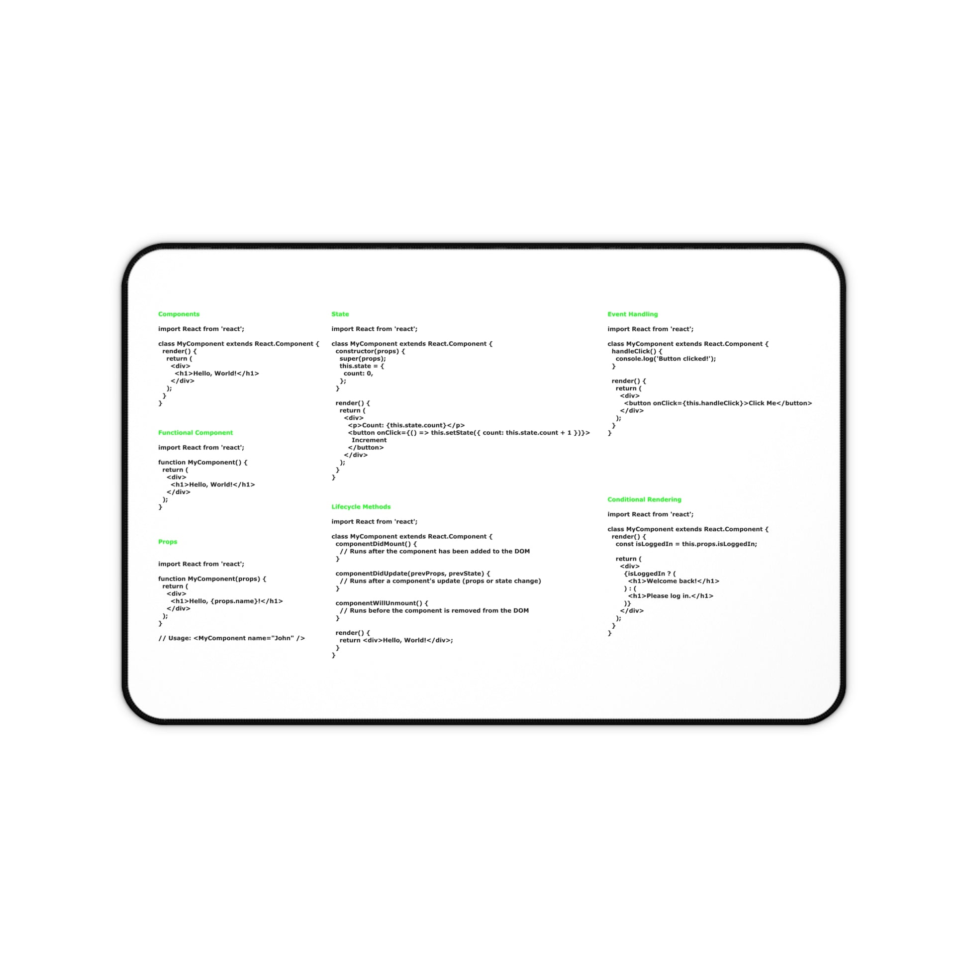 Reactjs Cheatsheet Desk Mat for Developer, Programmer, IT Admin